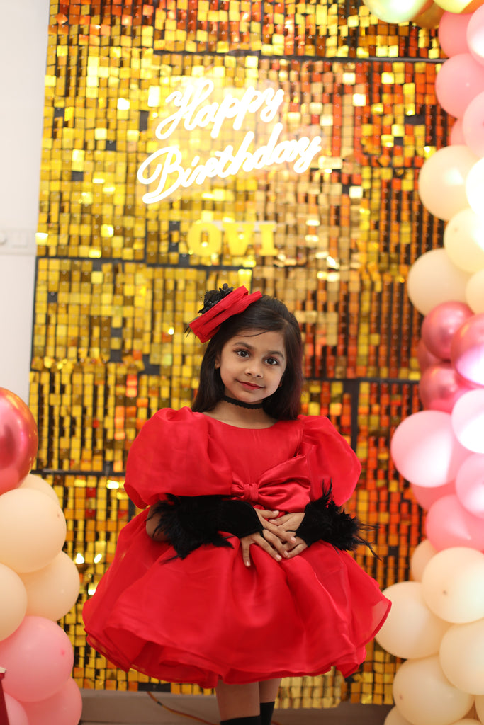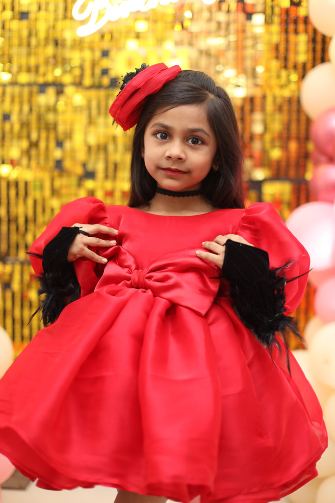 Fun, bold, and full of personality - the Cherry Pop Party Dress is a head-turner with its vibrant red hue, oversized bow, and playful puff sleeves. A perfect fusion of retro cuteness and modern flair — designed by a Fashion Designer in Pune and ideal as a trendy kids loungewear set.